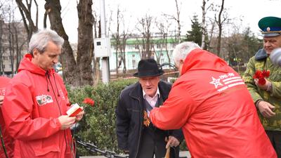 В ходе митинга Казбек Тайсаев вручил памятную медаль КПРФ в честь 75-летия Великой Победы 94-летнему участнику Великой Отечественной войны Федору Ивановичу Орлову.