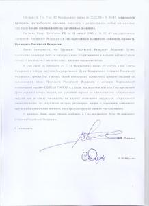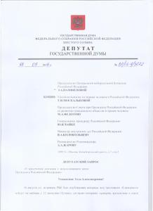 Депутаты Государственной Думы Валерий Рашкин и Сергей Обухов направили обращения председателю Центральной избирательной комиссии Элле Памфиловой, генпрокурору Юрию Чайке, министру внутренних дел Владимиру Колокольцеву с просьбой организовать проверку использования в агитации «Единой России», а также кандидатов в депутаты Государственной Думы цитат Владимира Путина, по результатам которой пресечь нарушения и привлечь виновных лиц к ответственности.