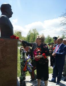 Цветы возложила и группа коммунистов республики: первый секретарь Северо-Осетинского Рескома КПРФ, руководитель фракции КПРФ в Парламенте РСО – Алания Е.А. Князева, Председатель Всероссийского общественного движения в поддержку армии, оборонной промышленности и военной науки (ДПА), командующий 58-ой армией в 2003-2006 гг. генерал-лейтенант В.И. Соболев, члены фракции КПРФ в Парламенте Республики, представители районных организаций КПРФ, ветераны войны и Партии.