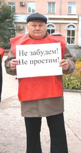 В областном центре 3 октября состоялась эстафета памяти и протеста: сразу в разное время и в разных местах прошло три пикета под девизом: "Не забудем! не простим!". Сначала, с 13 до 14 часов, прошел пикет - 30 человек - на площадке возле памятника К.Мяготину. Вечером с 17 до 18 - в пос. Энергетиков возле магазина "Метрополис" - 20 человек, в это же время состоялся пикет в микрорайоне "Рябково" возле кинотеатра "Спутник" - 20 человек. Всего в Кургане в пикетах прияло участие около 70 человек.