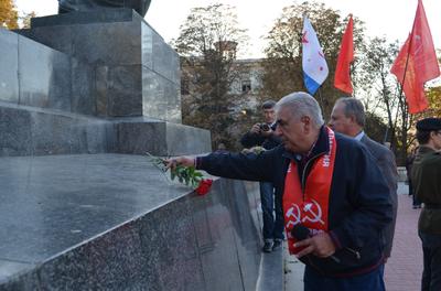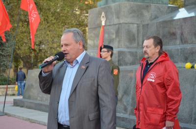 Митинг вёл секретарь по идеологии городского комитета КПРФ Сергей Михайлович Курочкин. Митинг начался с возложения цветов к подножию памятника.