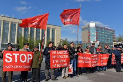 31 мая на площади Пименова состоялся пикет против роста цен на бензин, организованный Новосибирским областным отделением КПРФ и Ассоциацией перевозчиков. Понять, что на площади проходит акция протеста, можно было по большой дальнобойной фуре, стоявшей с прикрепленным лозунгом о «золотом» бензине. На самой площади собралось порядка 150 человек – коммунисты и перевозчики стояли рядом, объединенные под яркими плакатами с призывными лозунгами – «Не забудем, не простим эти цены на бензин», «Дорогой бензин – дорогой хлеб», «С такими ценами далеко не уедешь». Участвовали и депутаты-коммунисты, от Законодательного собрания Новосибирской области – Роман Яковлев, от Совета депутатов Новосибирска – Сергей Сухоруков, Олег Волобуев. Присоединялись и общественники – как, например, Олег Викторович, доверенное лицо Павла Грудинина на выборах 2018 года.