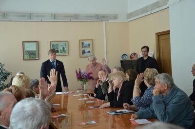 После хлебокомбината Алексей Русских посетил музей трудовой и боевой славы ВМУ. В актовом зале музея состоялась встреча депутата с представителями ветеранских и общественных организаций Воскресенского района. Со многими местными общественниками, в том числе из организации «Дети войны», Алексея Юрьевича связывают годы совместной работы. Депутат поведал соратникам и новым коллегам о работе Комитета по земельным отношениям и строительству, рассказал о борьбе фракции и партии КПРФ с либеральными реформаторами, которые вновь хотят переложить бремя пополнения похудевшего бюджета с богатеющих олигархических структур на плечи беднеющего населения.