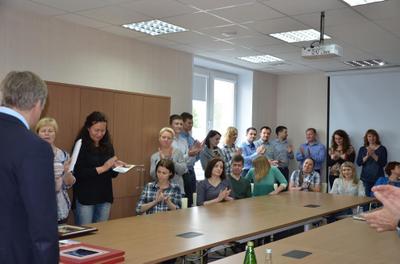 Следующей для депутата была встреча с коллективом работников Воскресенской обойной фабрики «Эрисманн», которая была построена на пустыре рядом с крупнейшим в Воскресенске жилым кварталом «Новлянский». Более 400 местных жителей работают на этой фабрике, продукция которой пользуется спросом во всех концах нашей страны, странах СНГ и Ближнего Востока. Среди работников предприятий значительное количество специалистов с высшим техническим образованием. На предприятии по-настоящему нашли себя талантливые воскресенские художники и дизайнеры, которые создают неповторимую красоту и изящество обоев «Эрисманн». В основном молодые мужчины и женщины внимательно слушали выступление Алексея Юрьевича Русских. После встречи один из технических специалистов фабрики сказал о том, что услышал от депутата много нового и важного, особенно по теме имущественного налогообложения.