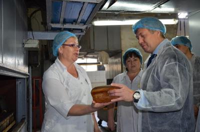 Вместе с представителями администрации комбината Алексей Юрьевич посетил производственные помещения, ознакомился с процессом изготовления хлебобулочных изделий.