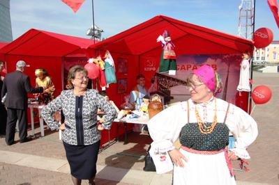 Праздничный «сабантуй» открыли саратовцы. Депутат Государственной думы, лидер саратовских коммунистов О.Н. Алимова преподнесла руководству фестиваля знаменитый саратовский калач.