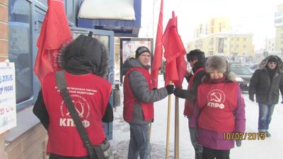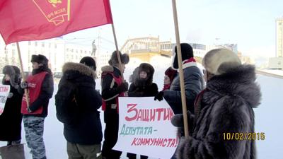 Комсомольцы Якутии, несмотря на 40-градусный мороз, сегодня, 9 февраля, в Якутске вышли на пикет.