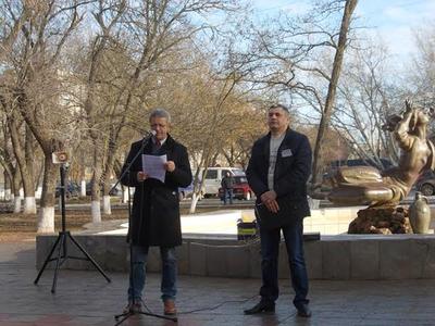 Вел митинг первый секретарь Красноперекопского горкома КПРФ, депутат городского совета Павел Синяков.