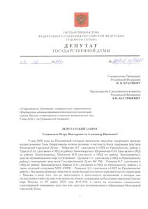 В содержательной части уведомления Игорь Тоненьков описывает правонарушения, которые как будто бы были совершены задержанными в День Победы депутатами от КПРФ. Но ведь рассмотрение дела по ним уже состоялось, и было принято решение. Поэтому по закону производство по делу не может быть снова начато, а, значит, действия заместителя начальника ОАТИ можно расценивать как преступление и злоупотребление полномочиями, которое влечет за собой существенное нарушение прав и законных интересов граждан.