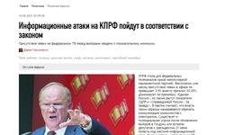 Информационные атаки на КПРФ пойдут в соответствии с законом. Присутствие левых на федеральном ТВ перед выборами сведено к показательному минимуму, - пишет "Независимая газета", анализируя данные мониторинга ТВ, размещанные на официальном сайте КПРФ. Далее автор газеты разбирает данные Центра исследований политической культуры России и Отдела ЦК КПРФ по проведению избирательных кампаний.