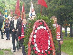Правда, некоторые микроскопические признаки публичного мероприятия все же проявились в акции коммунистов, так что собеседник «НГ» слегка слукавил. К примеру, пользуясь случаем, коммунисты вручили партбилеты двум новобранцам. А первый секретарь крайкома партии Николай Осадчий напомнил собравшимся, что Советский Союз победил в войне благодаря руководящей роли КПСС. «И если кто и выведет теперь страну из кризиса, так только КПРФ, а никакая другая партия», – сказал в заключение своей поздравительной речи Осадчий.
