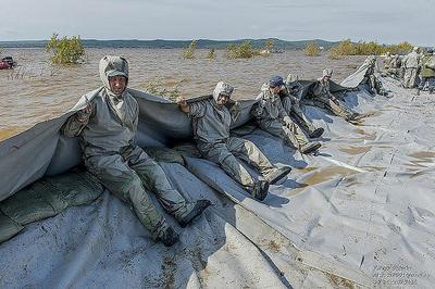 Ни по одному телеканалу этого не показали! На Дальнем Востоке установили «живую» дамбу из сотрудников МЧС и МО