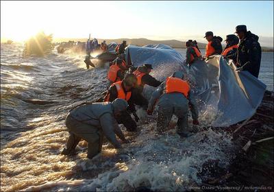 В соцсетях появились фотографии о том, как мужественно, ценой собственного здоровья сотрудники МЧС и военнослужащие противостоят стихии на Дальнем Востоке. Под фотографиями комментарии:
