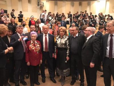Зрители - школьники, кадеты, курсанты военных училищ, педагоги, студенты, депутаты ГД, - аплодировали героям экрана стоя. Слёзы душили всех - от мала, до велика.