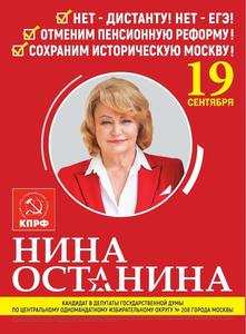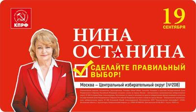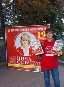 Вместе со своими товарищами-коммунистами и подругами из ВЖС - «Надежда России» лидер женского движения страны, кандидат в депутаты Государственной Думы Нина Останина сражается за победу в самом центре российском столицы – 208-м одномандатном округе.