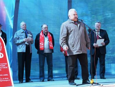 В Кургане члены КПРФ сначала приняли участие в демонстрации, которую организовала Федерация профсоюзов области. Представители трудовых коллективов, общественных организаций, политических партий собрались у Культурно-выставочного зала и у Дворца культуры машиностроителей. Колонны демонстрантов с двух сторон влились на площадь имени В.И.Ленина, где состоялся митинг. Коммунисты шли с красными флагами КПРФ, СССР и ЛКСМ, с лозунгами и транспарантами «Нищета народа – позор для страны!».