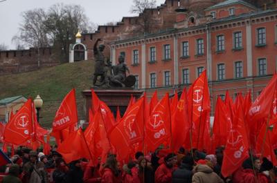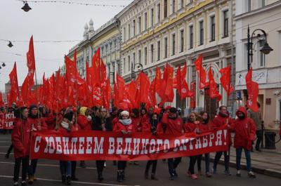 В день столетия Великого октября Нижегородское региональное отделение КПРФ провело традиционное праздничное шествие от площади Народного единства до площади В.И. Ленина, где состоялся торжественный митинг.