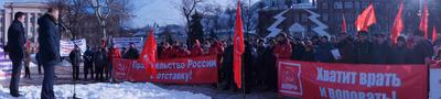 5 февраля Нижегородское отделение КПРФ провело митинг против антинародной политики властей, обнищания населения, против отмены индексации пенсий и социальных выплат, против увеличения пенсионного возраста, налогов и платы за ЖКХ.