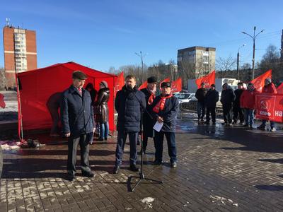 В митинге принял участие первый секретарь Комитета НРО КПРФ Владислав Егоров, депутат фракции КПРФ в Государственной Думе Российской Федерации 5 и 6 созывов Николай Рябов.