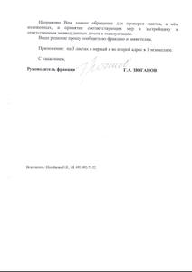 Прокурор Новгородской области А.В. Гуришев проинформировал Г.А. Зюганова о том, что по фактам выявленных нарушений районной прокуратурой направлены исковые заявления в Пестовский районный суд об обязании администрации Пестовского муниципального района провести капитальный ремонт в муниципальных квартирах. Также материалы проверки направлены в территориальный отдел Роспотребнадзора по Новгородской области в Боровичском районе для привлечения администрации Пестовского муниципального района и её должностных лиц к административной ответственности по статье 6.4. КоАП РФ («Нарушение санитарно-эпидемиологических требований к эксплуатации жилых помещений…»).