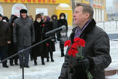 У Стелы трудовому подвигу ленинградцев, эвакуированных в Новосибирск в 1941-1943 годах, в Новосибирске прошел митинг, новосибирцы собрались на аллее на улице Восход, чтобы отдать дань памяти тем, кто боролся и выстоял в тяжелые годы.