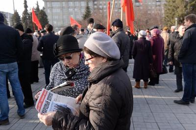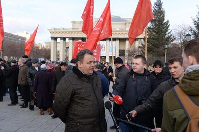 8 апреля центр Новосибирска, площадь Ленина, стала красной – прошел митинг протеста против курса правительства России, организованный КПРФ. Индексация пенсий всего на 4%, повышение цен на бензин, снижение прожиточного минимума – вот лишь некоторые «антикризисные» меры правительства, от которых страдают простые люди. Именно поэтому коммунисты проводят такие акции протеста – флаги КПРФ и ЛКСМ, советские знамена, лозунг «Власть и собственность – народу». Среди митингующих – депутаты Законодательного собрания Вадим Агеенко и Артем Скатов, депутат Совета депутатов Новосибирска Олег Волобуев, руководитель Депутатского центра КПРФ в Октябрьском районе Дмитрий Лобыня. Молодые коммунисты держали в руках плакаты, на которых были написаны пункты антикризисной программы КПРФ – 10 тезисов Зюганова.