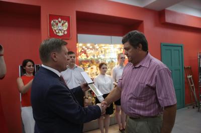 В заключении, Анатолий Локоть наградил бойца, который нашел медальон и обеспечил его сохранность, юбилейной медалью в честь 80-летия Новосибирской области.