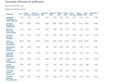 Данные свидетельствуют о безоговорочной победе представителя КПРФ А.Е.Локтя.