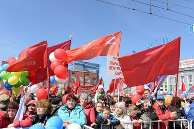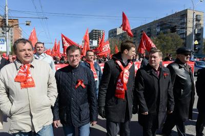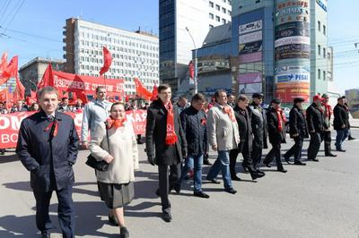 На площади Калинина утром 1мая было многолюдно. Формирование колонны КПРФ и союзников Компартии по объединенной оппозиции началось в 9.30. Алые флаги в руках демонстрантов украсили Красный проспект. Солнечный день, теплая погода и известные советские песни создали атмосферу праздника в День международной солидарности трудящихся. Люди, выходящие из метро, вливались в краснознаменную колонну, во главе которой шел мэр Новосибирска, первый секретарь Новосибирского обкома КПРФ Анатолий Локоть и члены бюро областного комитета КПРФ.