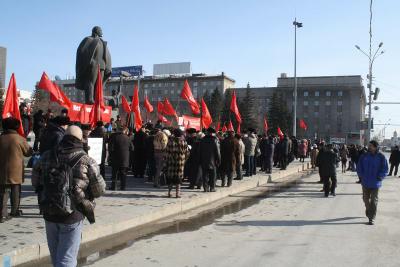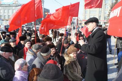 На площади Ленина по оценкам корреспондента КПРФНск собралось более 300 человек. Было много самодельных плакатов и большое количество красных флагов. Представители нескольких районных организаций КПРФ раздавали листовки прохожим и интересующимся происходящим гражданам. Проезжающие по Красному проспекту автомобилисты, рассмотрев лозунги на плакатах вроде: «Как заплатишь за жилье, понимаешь: власть — жулье!» поддерживали протестующих звуковым сигналом своих машин.