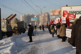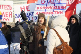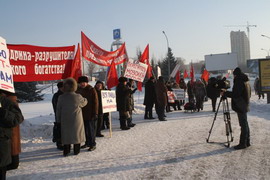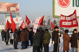 Сегодня, в 11-00 перед зданием облсовета состоялся массовый пикет сторонников КПРФ. Основным поводом для митинга стало грядущее принятие закона об увеличении сроков полномочий президента с четырех до пяти лет и госдумы с четырех до пяти лет соответственно. Именно сегодня эти президентские поправки будут рассматриваться в областном совете Новосибирска. Собравшиеся единым фронтом выступили против изменения конституционных норм, подрывающих устои демократии как таковой.Позицию пикетчиков пояснил Антон Тыртышный, секретарь Центрального районного отделения КПРФ: “ С 1993 года – это первое внесение поправок в Конституцию. Власть могла бы сделать это через всенародный референдум, но решила, что проще будет ни с кем не советоваться и принять решение единолично. Мы против увеличения сроков полномочий, так как это прямое усиление действующей антинародной власти, проводящей политику в интересах менее чем пяти процентов населения. Мы видим как власть стремится укрепиться на своих позициях, чувствуя начало масштабного бюджетного кризиса, чувствуя что их скоро попросят со своих постов.”По плакатам и транспарантам пикетчиков можно было судить и о других ошибках нынешней власти – несостоятельность минфина Кудрина, резкое увеличение тарифов на ЖКХ в следующем году и масштабное сокращение социальной поддержки.Несмотря на то, что мероприятие было санкционировано, власть предприняла примитивную попытку саботажа пикета – в срочном порядке на место проведения была выпущена крупная снегоуборочная техника.