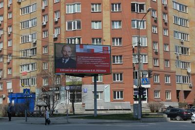 На улицах Новосибирска появилась серия баннеров, посвященных 150-летию со дня рождения Владимира Ленина. Портрет организатора Октябрьской революции соседствует на баннерах с высказываниями известных людей о Ленине.