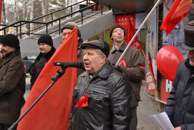 Первый секретарь районного комитета КПРФ Анатолий Казак от имени коммунистов района тепло поздравил участников митинга с праздником, отметив, что 7 ноября 1917 года — день Великой Октябрьской социалистической революции был, есть и будет важнейшим политическим событием, оказавшим влияние на ход всей истории человечества. Благодаря этому был образован СССР, сплотивший вокруг себя все угнетенные народы планеты, послуживший для них путеводной звездой в борьбе за свободу и независимость. Именно советский народ оказал решающее влияние в разгроме фашисткой чумы, достиг невиданных высот в развитии науки и техники. Именно в советское время образовался и наш Академгородок, созданный по решению партии, в котором жили и трудились коммунисты, ученые с мировыми именами - академики Лаврентьев и Коптюг. Сегодня, подчеркнул оратор, мы живем в другой стране, и нам навязан другой политический курс. В угоду мировой и народившейся российской буржуазии была разрушена промышленность и проведена приватизация. Сегодня те, кто находится у власти, принялись за разрушение образования и науки. Анатолий Казак призвал всех тех, кому не безразлична судьба страны и науки, сплотить свои ряды в борьбе против творимого произвола и встать на пути разрушительных процессов.