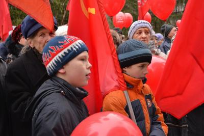 На фоне красок поздней осени добавился еще один цвет — красный. Алые полотнища знамен и флагов, красные воздушные шары с партийной символикой как-то по-особому подчеркивали происходящее, придавая ему торжественность и значимость. Сотни жителей, откликнувшись на призыв районного комитета КПРФ, пришли сегодня к зданию Президиума СО РАН, чтобы принять участие в ежегодном мероприятии – шествии и митинге, посвященных годовщине Великой Октябрьской социалистической Революции.
