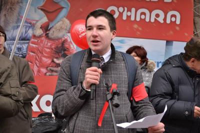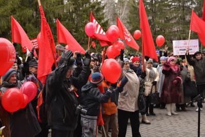 С большим вниманием участники митинга выслушали выступление депутата Государственной Думы, первого секретаря Новосибирского обкома КПРФ Анатолия Локотя. Он поздравил присутствующих с праздником — 96-й годовщиной Великой Октябрьской социалистической революции.