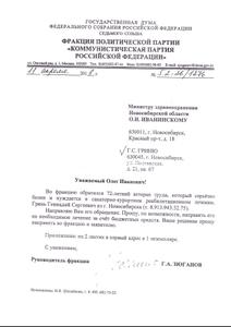 Новосибирская область. Г.А. Зюганов помог пенсионеру получить путёвку на санаторно-курортное лечение