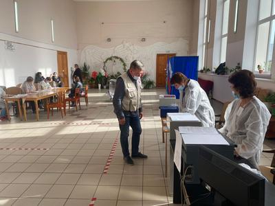А кандидат от КПРФ по 135-му округу Андрей Жирнов в этот день инспектирует участки Татарского района: