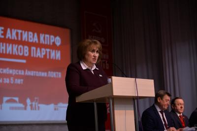 В президиуме — второй секретарь Новосибирского обкома КПРФ Ренат Сулейманов, секретари обкома Владимир Карпов и Алексей Русаков, а также депутат Госдумы Вера Ганзя.