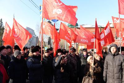 Новосибирские коммунисты прошли по Красному проспекту 23 февраля