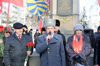 Торжественный митинг открыл второй секретарь Новосибирского обкома КПРФ Ренат Сулейманов, после чего ветераны военной службы, полковники Вячеслав Журавлев и Олег Волобуев рассказали о заслугах Советской армии.