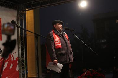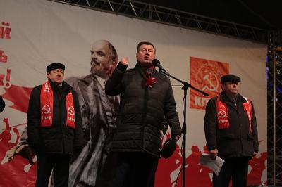 — Страна истекала кровью: война, голод, разруха. И в таких условиях большевики взяли не только власть, но и ответственность за судьбу страны. А что сейчас? Растут налоги, падает производство, стареют основные фонды, хозяйства в условиях рекордного урожая гибнут. В период выборов президента, выборов губернатора Новосибирской области нам надо сказать веское слово в защиту социализма, социальных завоеваний. Да здравствует Октябрьская революция!