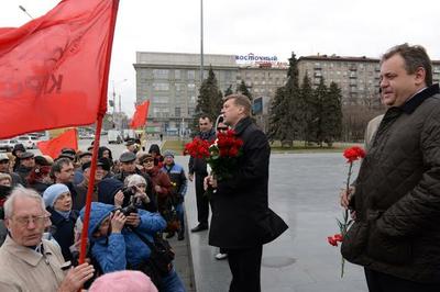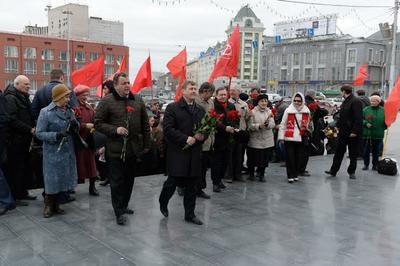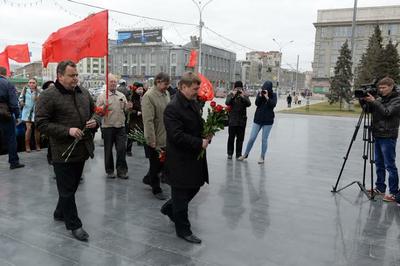 После выступления Анатолия Локтя коммунисты и сторонники партии возложили цветы к памятнику Вождю мирового пролетариата.