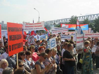 17 июля в парке «Городское начало» состоялся митинг против повышения пенсионного возраста, организованный Федерацией профсоюзов Новосибирской области. Побит очередной рекорд массовости: собралось более 2 тысяч человек, пришли представители всех отраслевых профсоюзов региона – рабочие, педагоги, врачи. Основные лозунги таковы – «Правительство! Хватит экономить – развивай экономику», «Бей тревогу, молодежь! Промолчишь – и пропадешь». На митинге можно было заметить представителей организаций, подписавших соглашение о борьбе с повышением пенсионного возраста, которое состоялось на прошлой неделе в помещении Новосибирского областного комитета КПРФ.