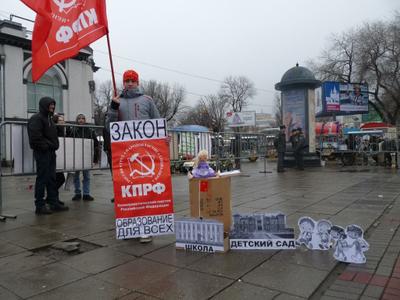 1 декабря в Саратове на площади Кирова у «Крытого рынка» состоялась акция протеста против предложенного Правительством РФ и принятого Госдумой в первом чтении проекта закона об образовании, который закрепляет, начиная с детского возраста, курс на платность образования и, следовательно, его недоступность для бедных, отнимает льготы у сельского учителя, выплаты за ученые степени и звания у вузовских преподавателей, ведет к резкому падению качества фундаментальной подготовки учеников и студентов.