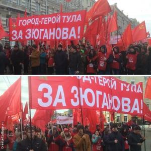 Резолюцию митинга, принятую единогласно, зачитал член Тульского обкома КПРФ, депутат районного совета депутатов Ясногорского района Максим Дронов. В этот же день большая делегация тульских коммунистов численностью более 150 человек под руководством секретаря обкома партии Алексея Лебедева под вывеской «Город-герой Тула за Зюганова!» приняла участие в мероприятии КПРФ, посвященному 98-й годовщине создания Советской армии и Военно-морского флота, в Москве.