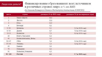 Вот вам данные ЮНЕСКО и Мирового банка: в 2012 году по этому показателю мы занимали 98-е место, а в 2018 – 120-е.