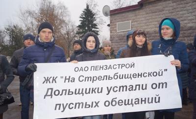 11 ноября обманутые дольщики города Пензы вышли на митинг у кинотеатра «Родина». Около сотни человек с плакатами: «Пензастрой», дострой», «Дольщики устали от пустых обещаний», «Мама, папа, я – бездомная семья» и другими, вышли, чтобы рассказать о проблемах с недостроенным жильём.