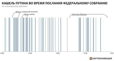 6) Явно не простудной этимологии «кашель Путина», особенно интенсивно выраженный во время первой части Послания, может говорить о психо-эмоциональном напряжении и понимании президентом крайней сложности своего положения в мировой элитной конфигурации и опасности ситуации для него лично;