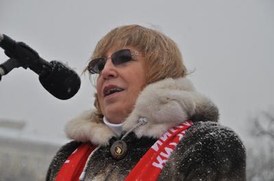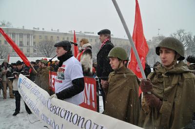Открылся митинг выступлением первого секретаря Санкт-Петербургского горкома КПРФ, члена ЦК партии О.А. Ходуновой. Как отметила Ольга Ходунова, на Украине произошла смена власти, имеющая признаки государственного переворота, а правоохранительные органы и Вооружённые силы Украины деморализованы и подчинены боевикам Евромайдана. Решениями новой профашистской власти Украины запрещается деятельность местных отделений Коммунистической партии. Громятся офисы компартии, а коммунисты подвергаются нападениям и пыткам, их семьям угрожают физической расправой. Разрушаются памятники В.И. Ленину, М.И. Кутузову и советским воинам-освободителям. Проводится перераспределение собственности от приближённых к Януковичу олигархов в пользу тех, кто финансировал деятелей Майдана, а миллионы трудящихся Украины от борьбы группировок и кланов буржуазии получают лишь разруху, безработицу, беспорядки и грядущий голод. Эскалация насилия со стороны ультранационалистических сил подвергает опасности жизнь и законные интересы российских граждан и всего русскоязычного населения на Украине и в Крыму и вызывает законную озабоченность у Российской власти, которая оставляет за собой право защитить свои интересы и проживающее там русскоязычное население. По мнению лидера ленинградских коммунистов, прогрессивной общественности следует добиваться от российской власти выполнения целого ряда принципиальных требований, в частности, недопущения расхищения крымской собственности российскими олигархами, скорейшего решения вопросов о национализации доходов от минерально-сырьевой базы страны и вывода наших международных резервов и активов из американских ценных бумаг. «Фашизм не пройдет!» - так завершила свое выступление О.А. Ходунова.
