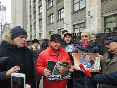 В центре Москвы прошла акция «Очистим Россию от грязи» против лживых СМИ, распространяющих недостоверные сведения о депутатах КПРФ, о губернаторе Иркутской области Сергее Левченко и директоре «Совхоза им. Ленина» Павле Грудинине.